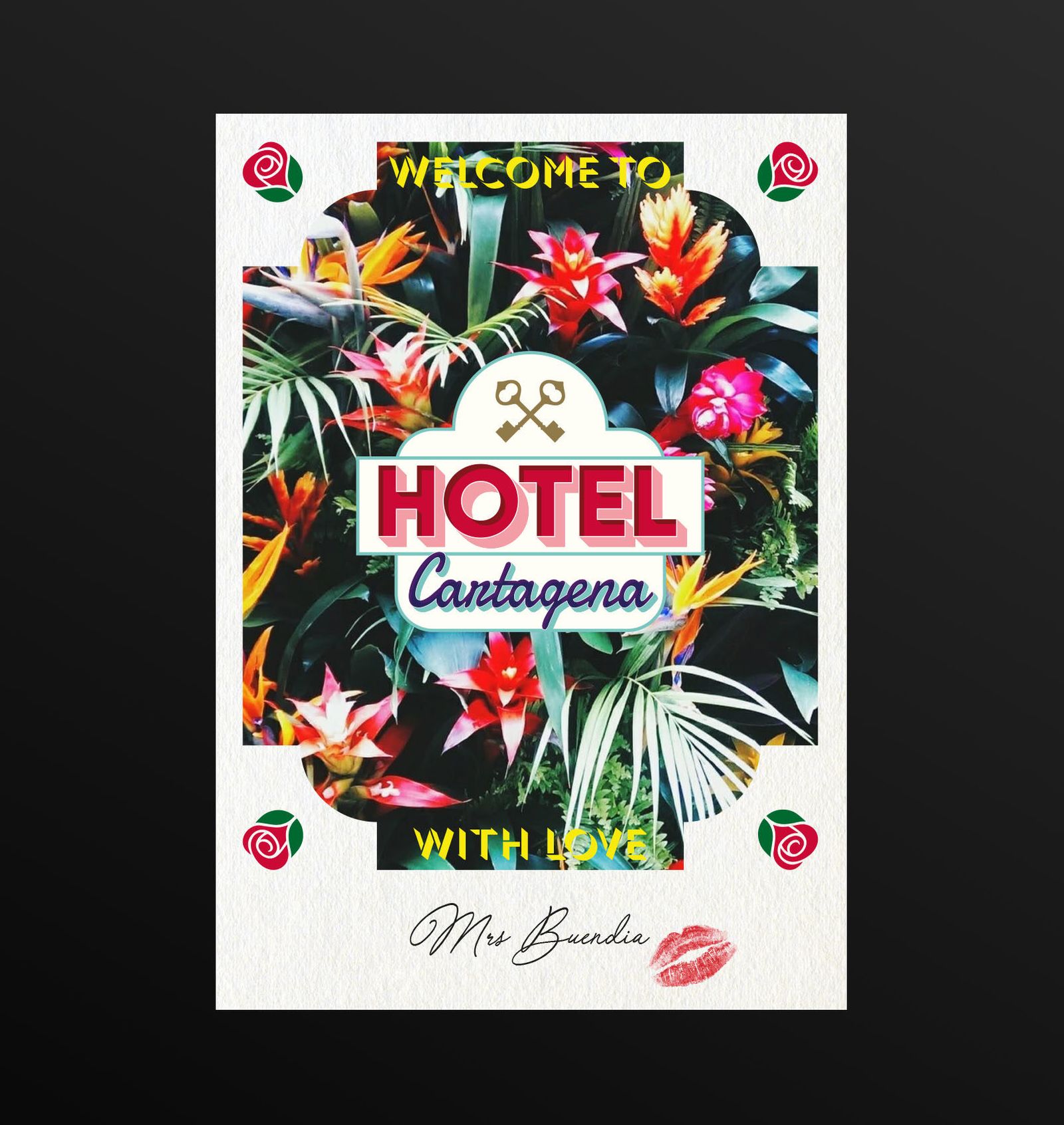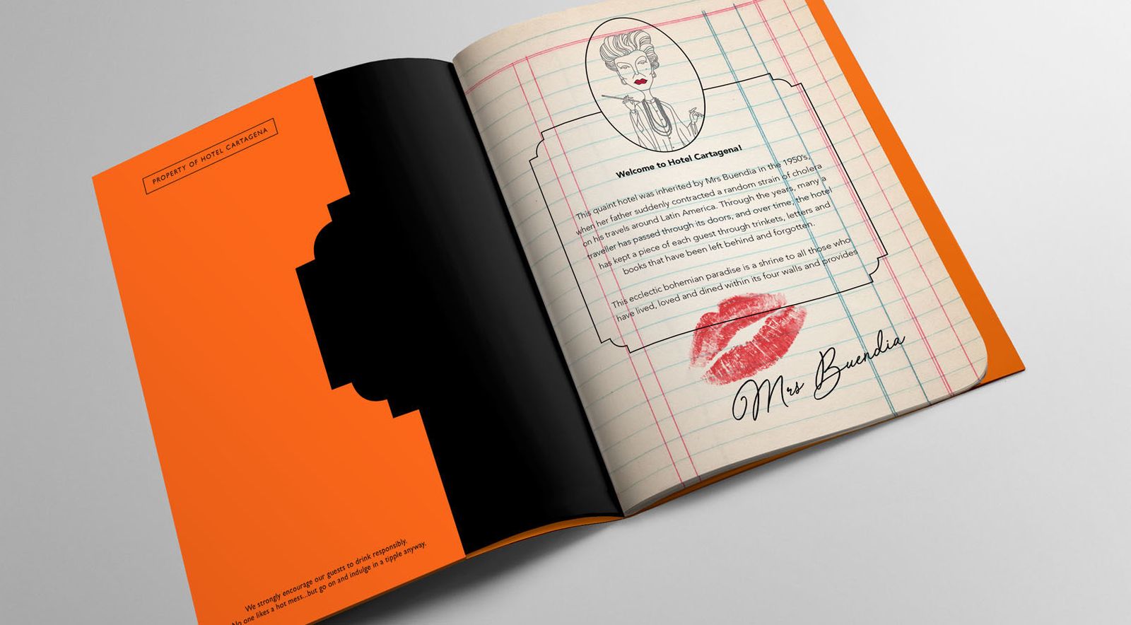 Alongside the brands theatrical and bohemian look and feel, we created a dramatic brand character named Mrs Buendia to bring the concept and story of Hotel Cartagena to life.